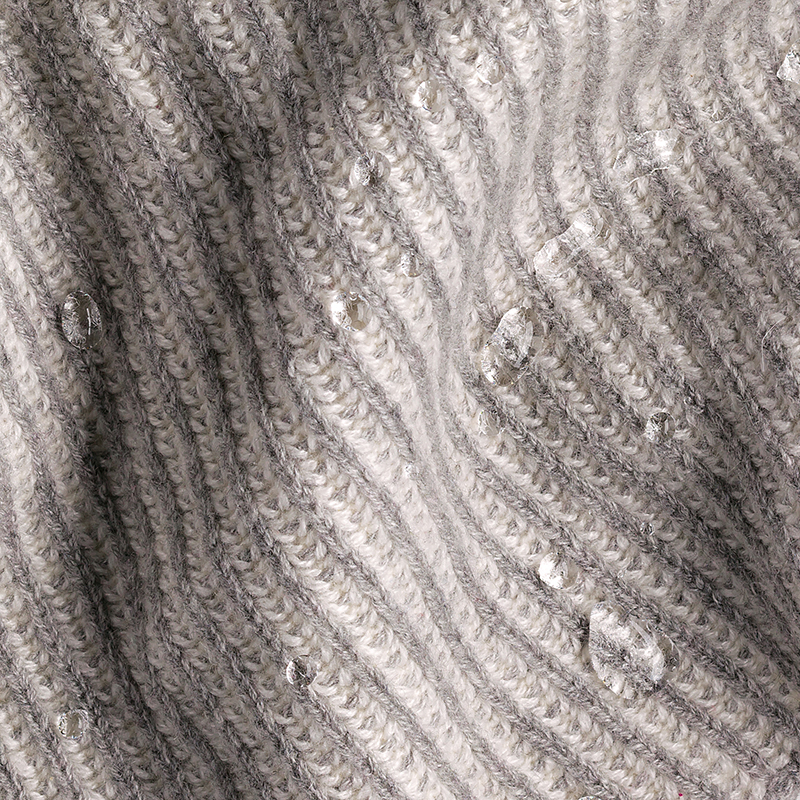 Una combinazione di cashmere pettinato Lora & Festa e seta crea un filato fresco e leggero con mano morbida e fluida. Con la lavorazione jacquard, genera un interessante contrasto lucido-opaco.